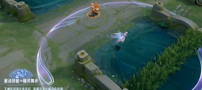 2、被动技能:艾琳获得强化普攻后,依稀可见丝绸动态环绕,裹挟凝聚着桑树之力的能量球随流矢释出。