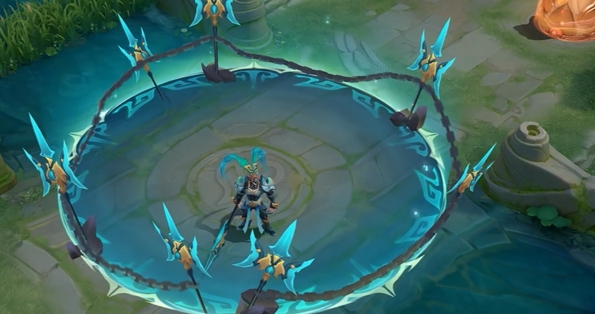 5、大招:腾空而起,落地后周身会出现绿色的角斗场。