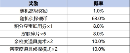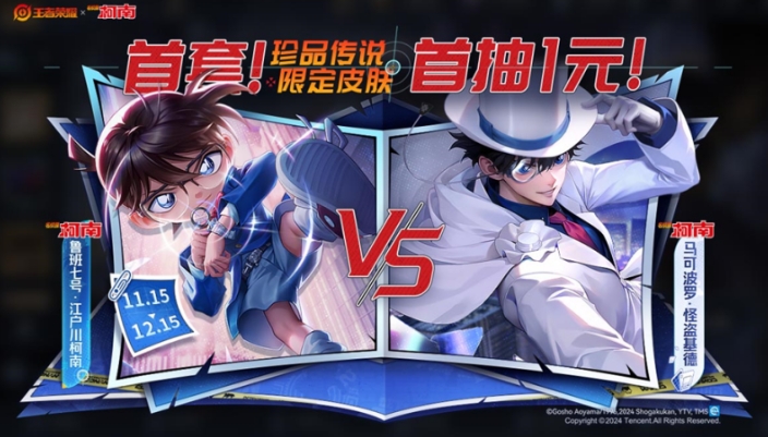 活动简介:使用侦探透镜进行祈愿,有概率获得皮肤、侦探硬币、皮肤碎片等奖励。使用侦探硬币可兑换全新珍品传说皮肤鲁班七号-江户川柯南、马可波罗-怪盗基德等奖励。