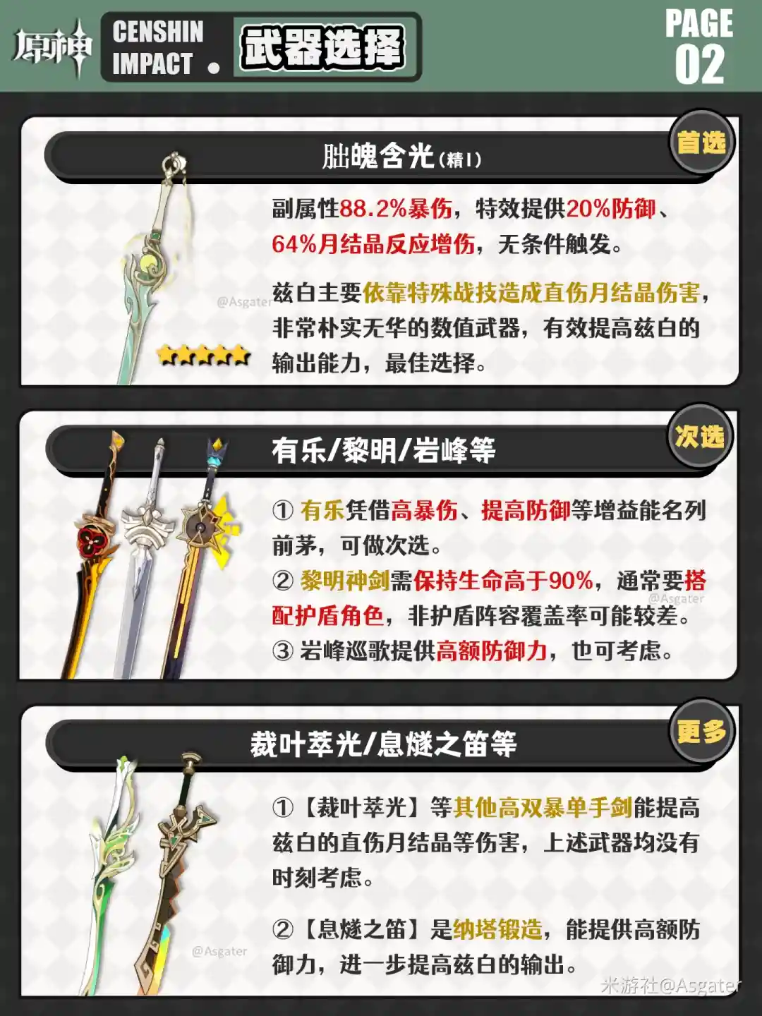 ③ 武器【朏魄含光】非常简单直接,非常暴力的数值武器,大幅提高兹白的输出能力,可在抽取0命兹白后优先考虑。
