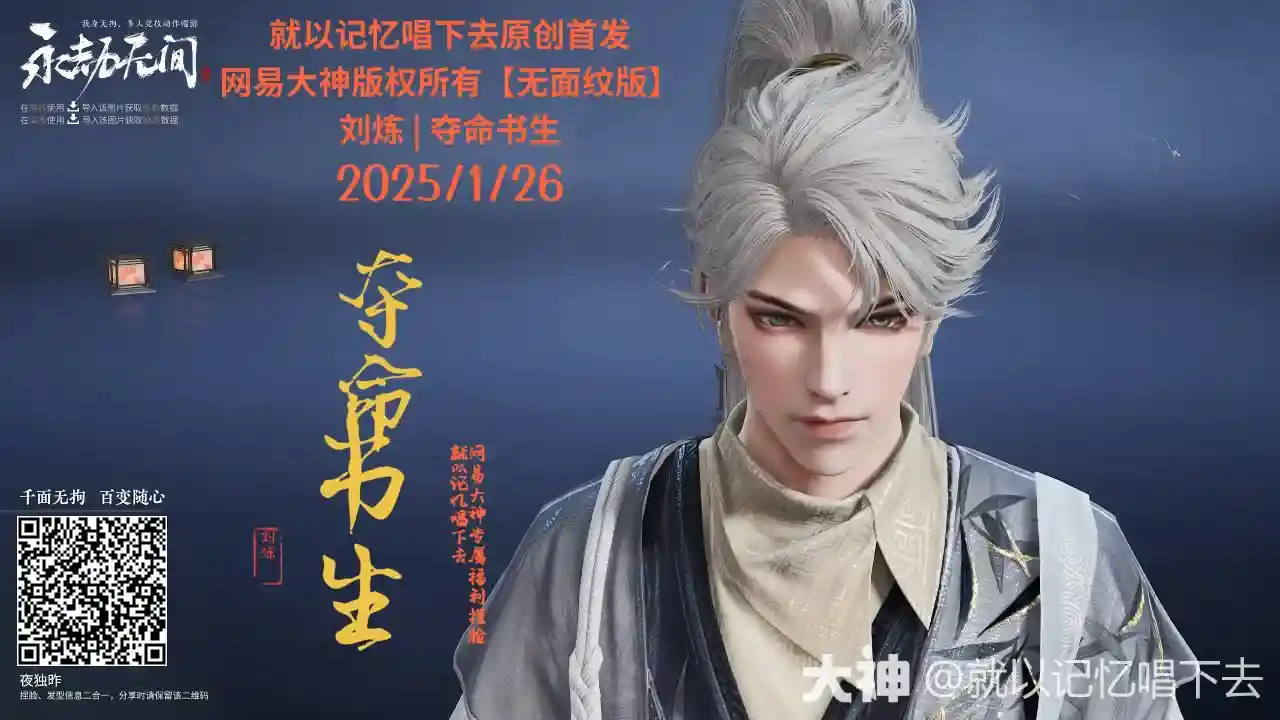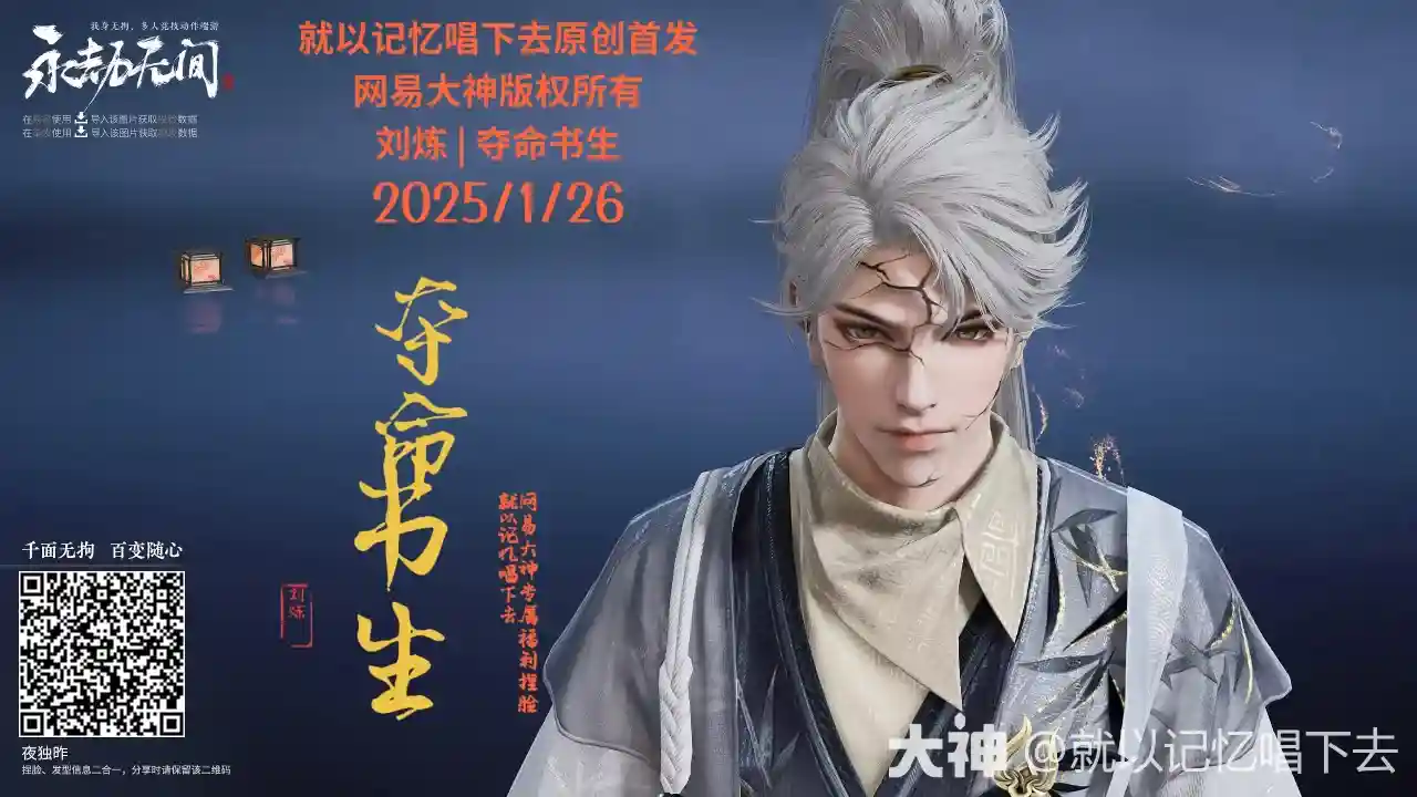 永劫无间刘炼夺命书生捏脸二维码一览