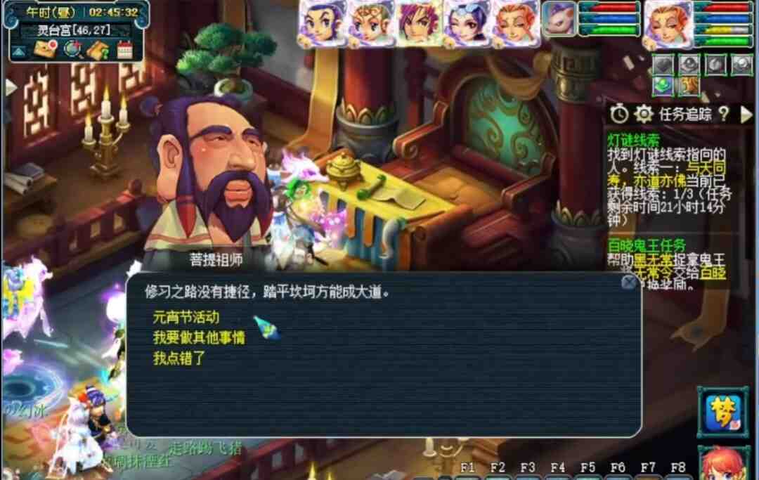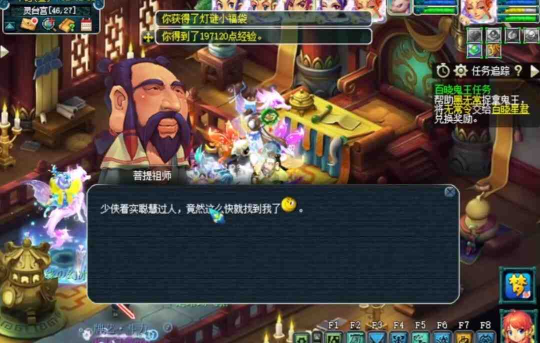 元宵节第十天(3月8日),灯谜:菩提祖师坐标:方寸山(121,138)进入的方寸大殿内