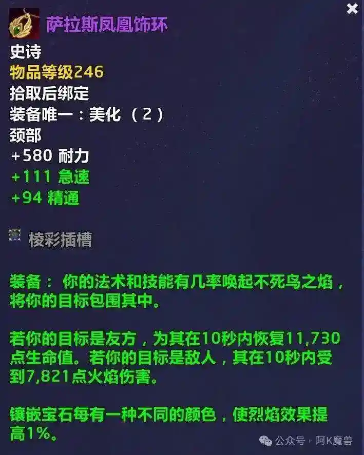 萨拉斯凤凰饰环:团本进军奎尔丹纳斯BOSS贝洛朗,奥的子嗣掉落;