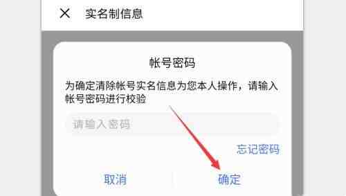 6.输入密码后点击确定,删除后即可修改实名认证。